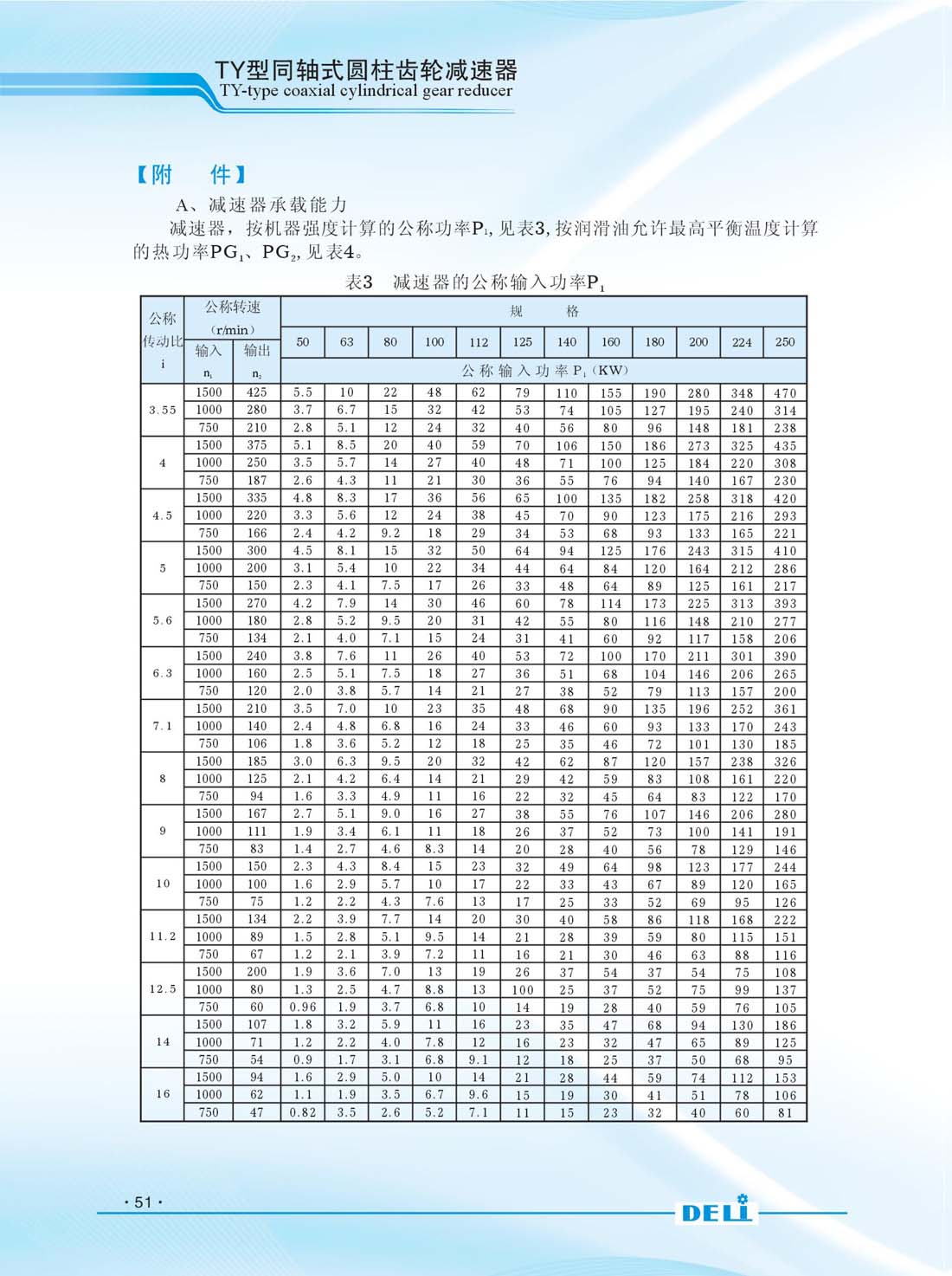 TY系列同軸式硬齒面齒輪減速器是理想的動力傳送裝置,它廣泛用于冶金、礦山、化工、紡織、儀器、能源、建材等行業。減速器的齒輪圓周速度不大于20m/s,允許正、反轉。使用于水平臥式安裝,前 后傾斜角不大于20。直聯電機為Y系列三相異步四級電動機,電機的安裝型式為B5或B35;工作環境溫度為0攝適度-40攝適度。 減速器的型號TY50/TY63/TY80/TY100/TY112/TY125/TY140/TY160/ TY180/TY200/TY224/TY250